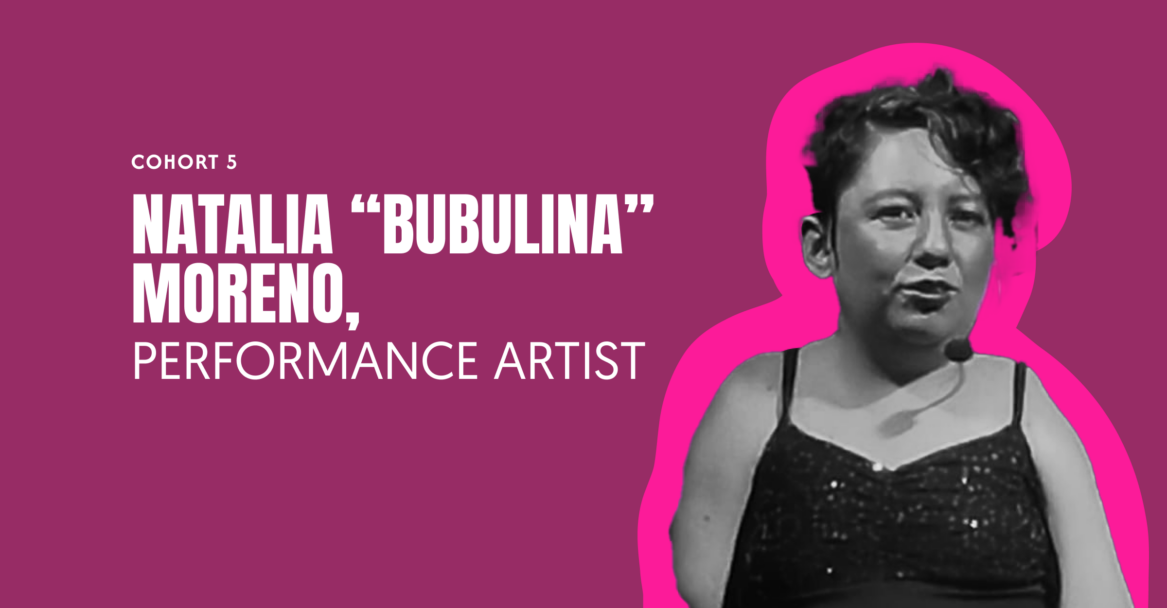 Natalia «Bubulina» Moreno Rodríguez (ella) es una mujer con discapacidad física, comunicadora social, defensora y educadora en derechos humanos, consultora latinoamericana y experta en la interseccionalidad entre discapacidad, género y diversidad sexual. Le encanta el lenguaje corporal, la danza y el teatro, y tiene conocimientos de Danza Contemporánea Integrada. Crea y produce diferentes tipos de arte (danza, teatro e interpretación), entre ellos el premiado monólogo performático «Tentáculos», presentado varias veces en diferentes ciudades de Colombia y también en países como México y Nepal. Inspira al público e invita al debate sobre las experiencias de exclusión y discriminación. Recibió un certificado como profesora de Danza Contemporánea Inclusiva con la Metodología DanceAbility en febrero de 2012.